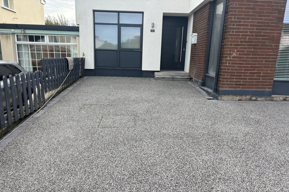 We’ve just completed a resin driveway in Wicklow Town, designed with a granite cobble borderline, granite kerbstones, and a matching …